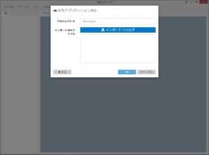 起動したあとエディタをクリックしてそのご新規アプリケーション壁紙>インポートフォルダをクリックし先程.exeを出力したフォルダを選択、任意のプロジェクト名を設定後OKをクリックします。
